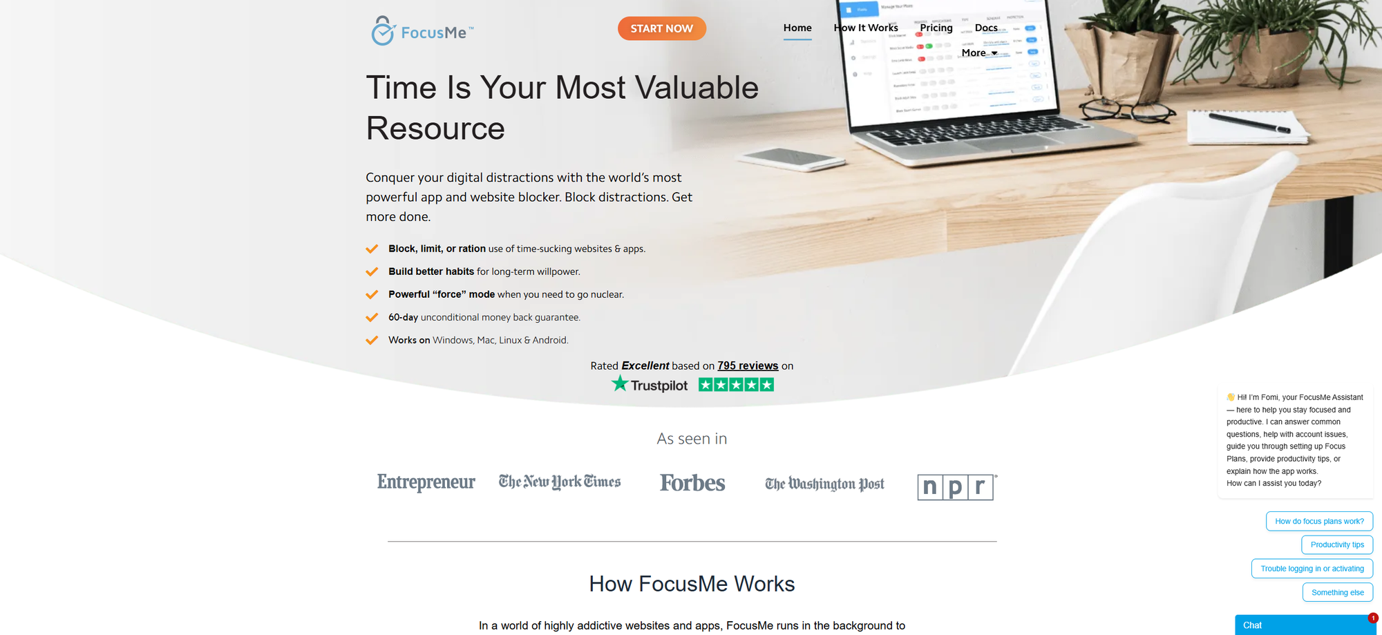 FocusMe sits somewhere between Freedom's simplicity and Cold Turkey's brutality. It blocks websites and apps, works across Mac, Windows, Android, and Linux, and comes with pre-built blocking plans (Social Media, News, Gaming) that you can activate instantly without configuring anything from scratch.
