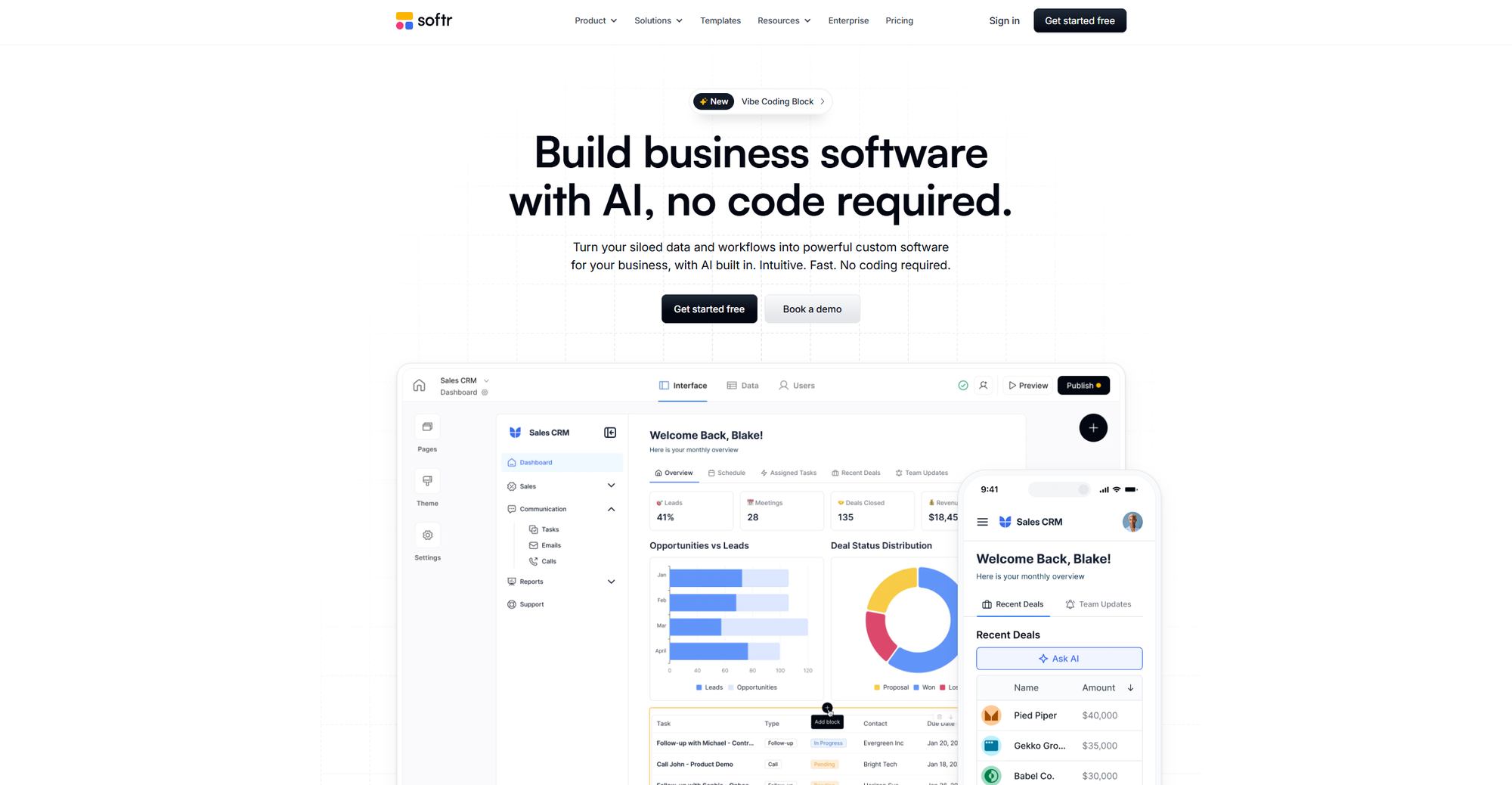 Softr sits in a different category from the other builders here. Rather than building traditional marketing sites, Softr excels at turning your existing data (in Airtable or Google Sheets) into functional web applications.