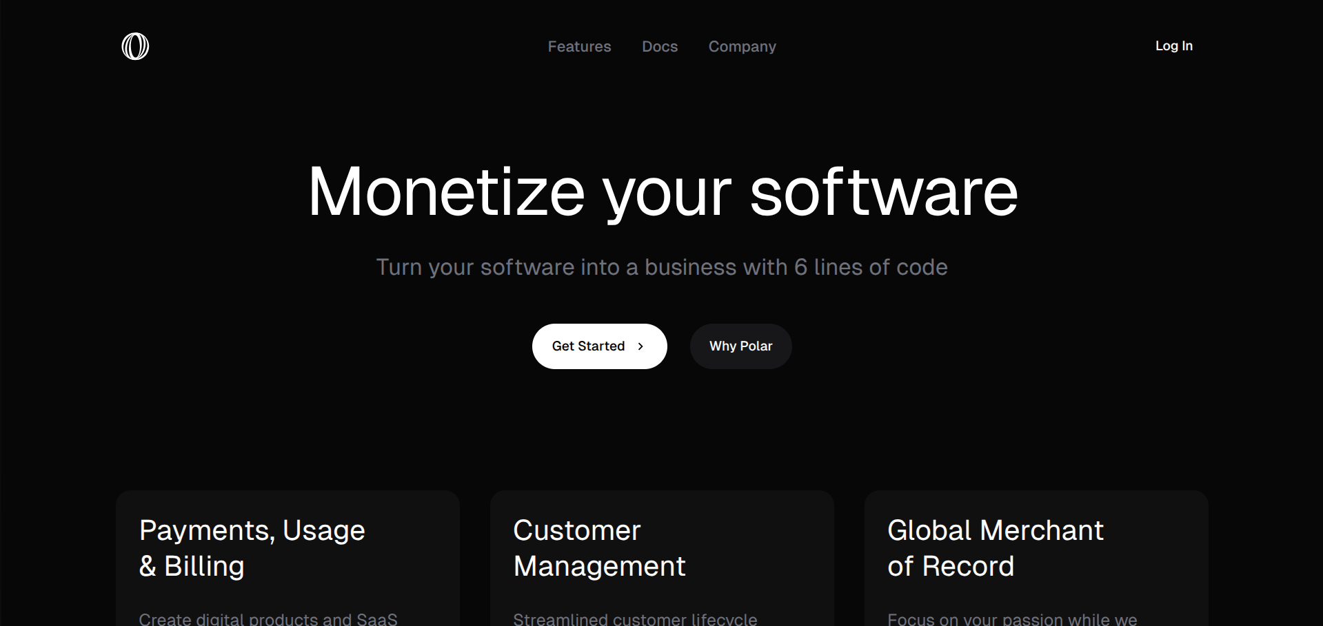 Polar is an open-source, developer-focused platform that's gaining traction fast among indie hackers. It acts as a merchant of record and charges 4% + $0.40 per transaction, making it the cheapest MoR option on the market.