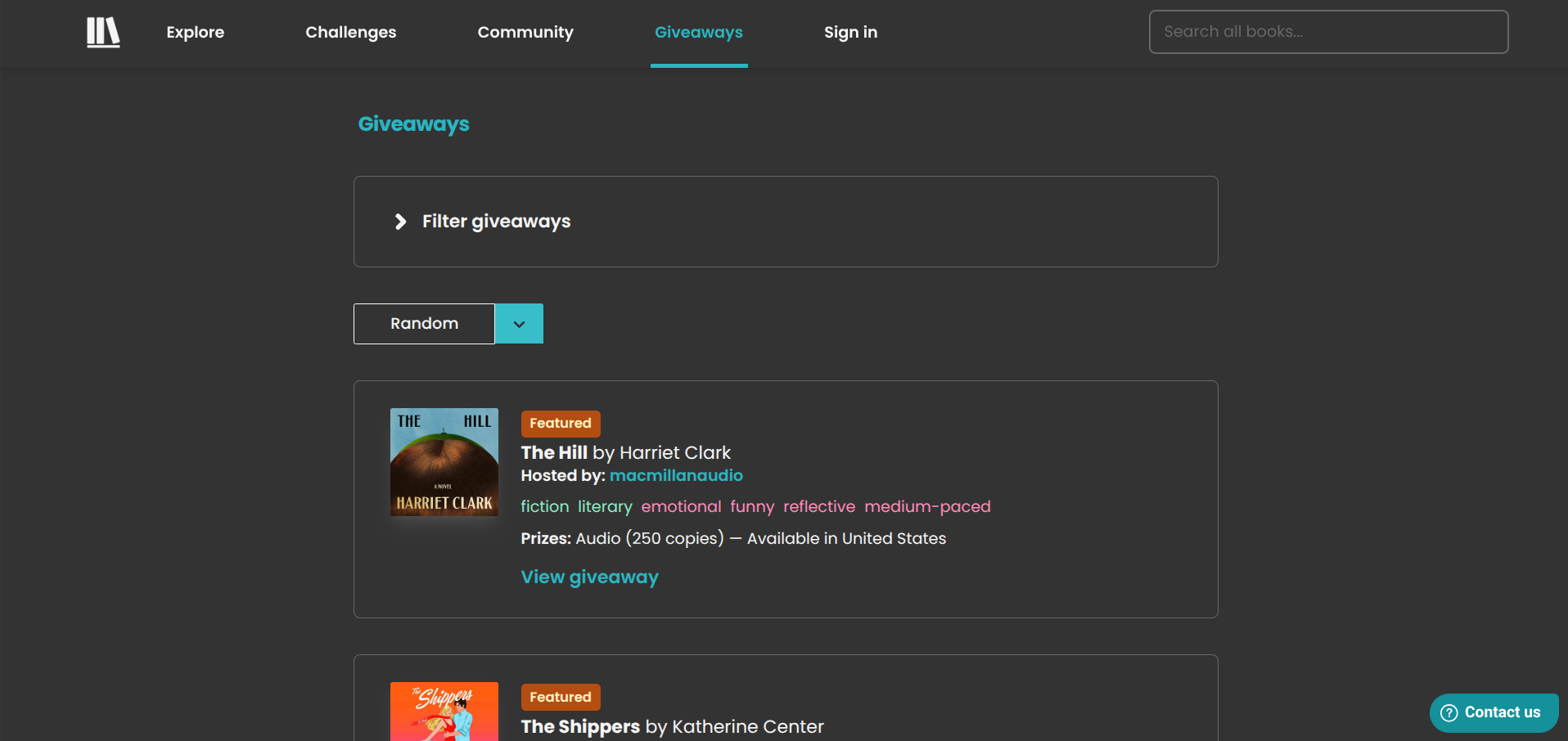 StoryGraph runs a dedicated giveaway platform where authors (both traditionally published and indie) pay a fee to host book giveaways to StoryGraph's audience. The platform launched in beta back in September 2022, ran at half-price for years during the testing phase, and officially came out of beta in March 2026.
