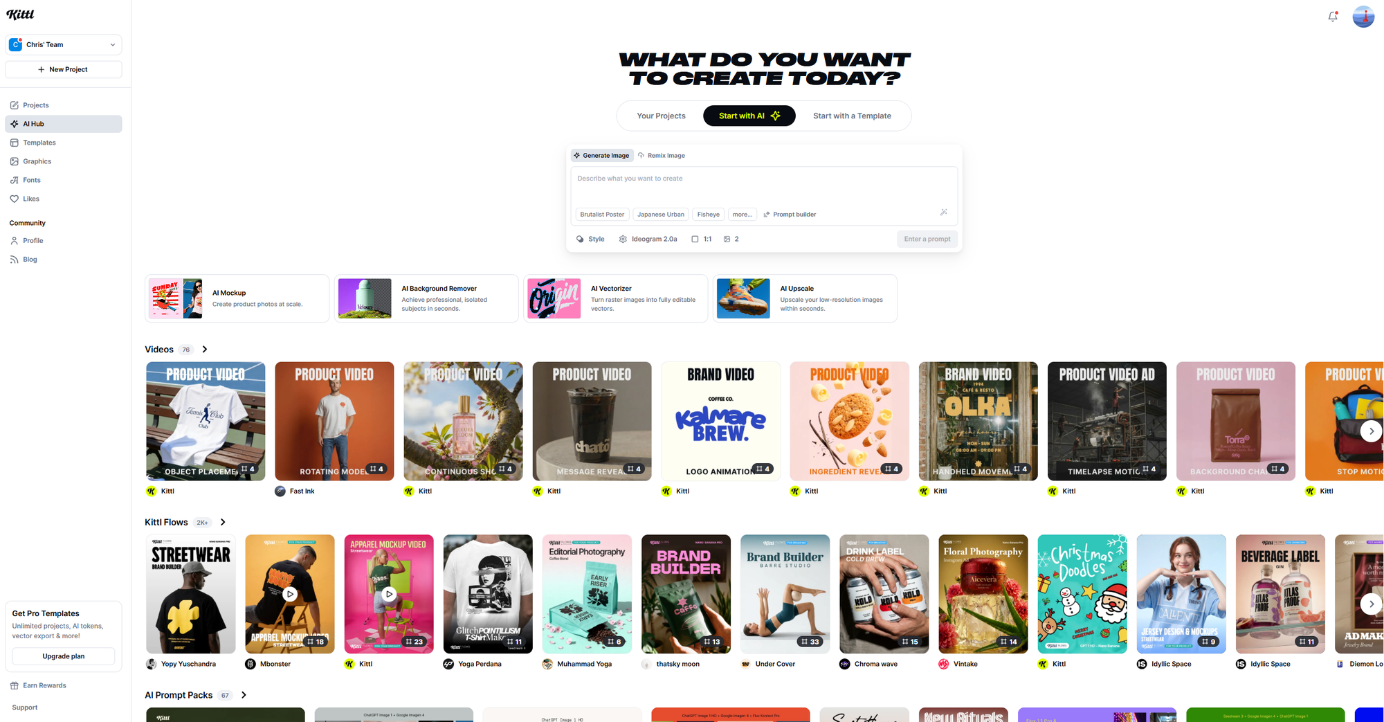 Kittl Flows is a newer feature that lets you build creative pipelines with AI. Think of it as automating repetitive design tasks: