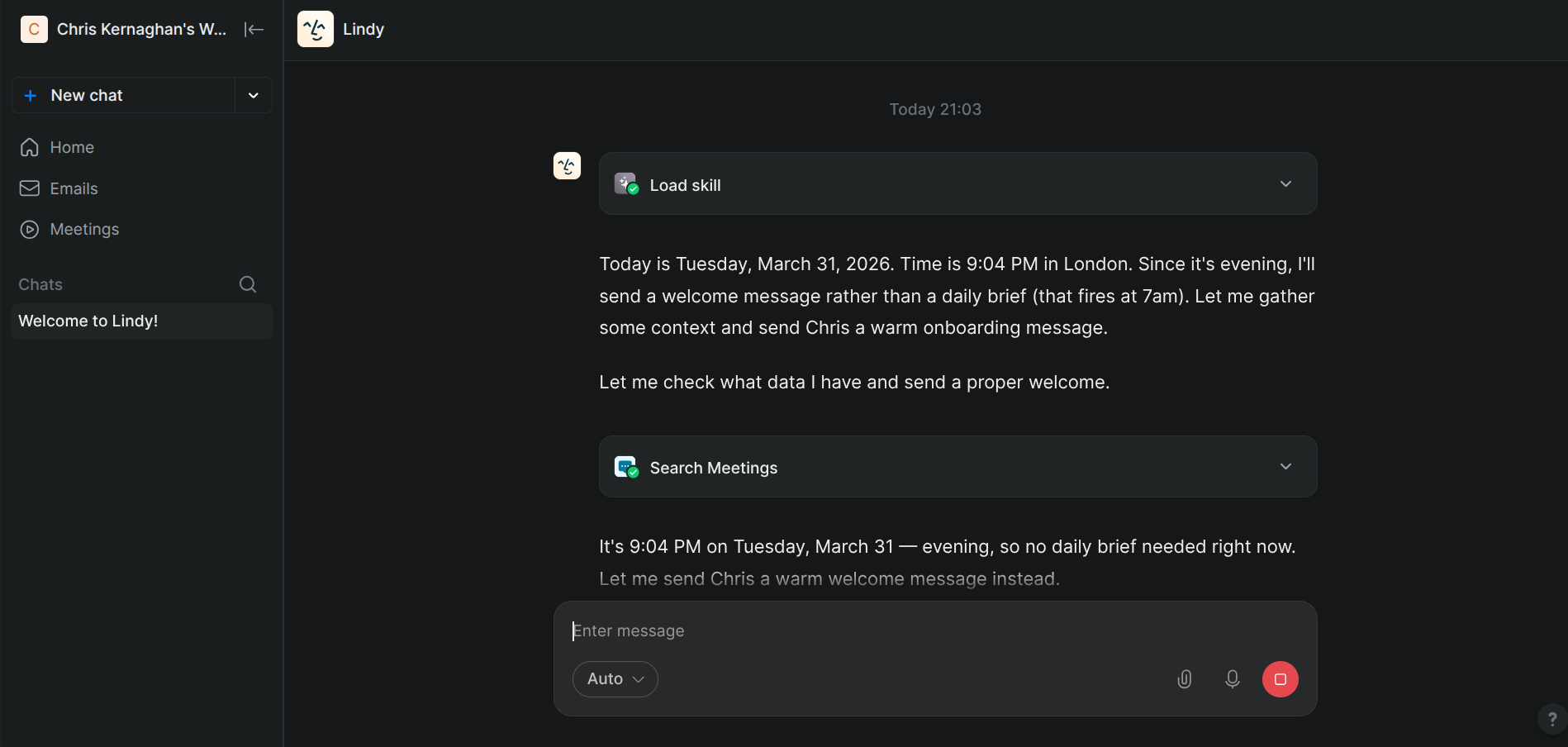 Before each calendar event, Lindy researches the attendee, pulls relevant information from your CRM, and sends you a briefing. Name, company, recent news, context from previous conversations, open items from your notes.
