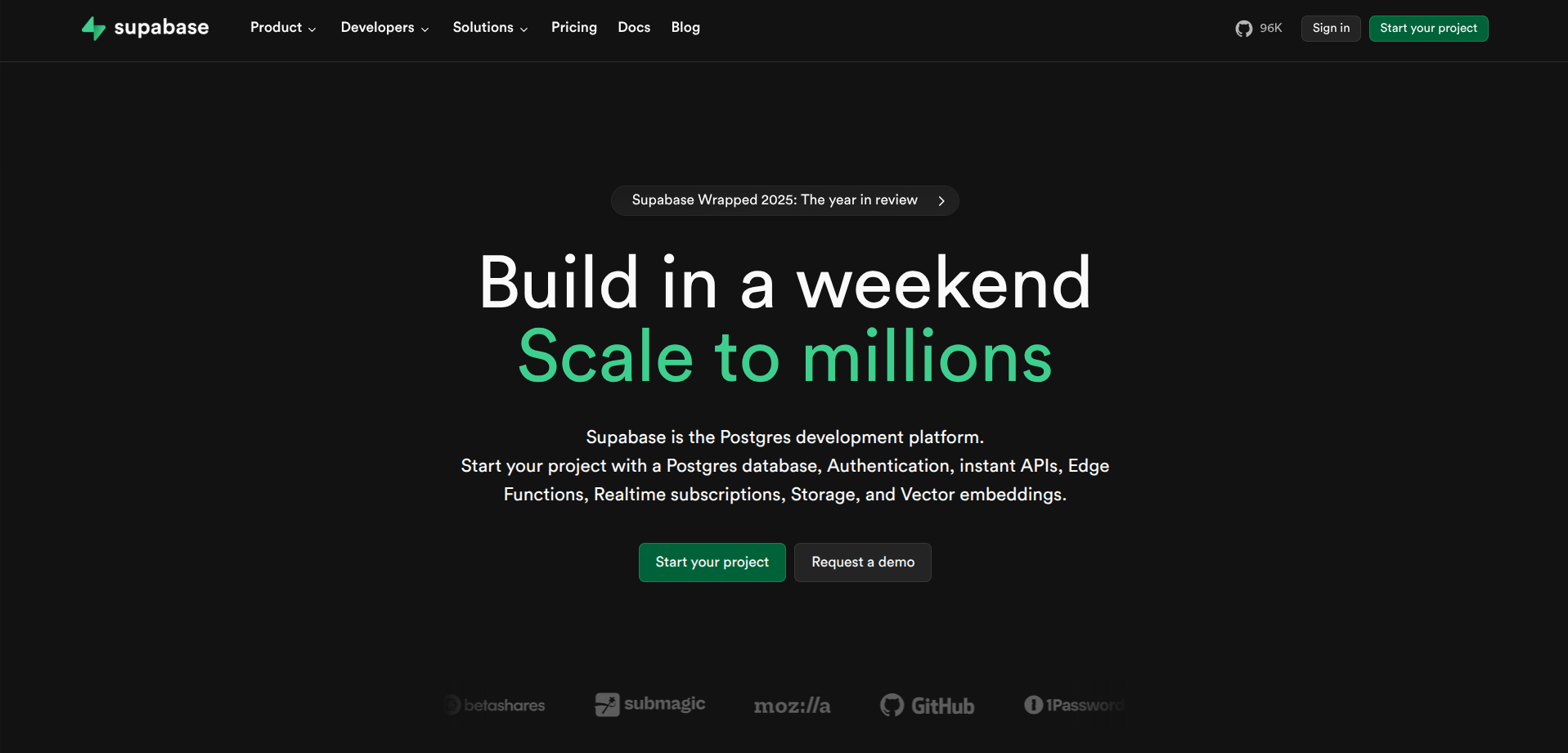This is the open-source alternative to Firebase. It gives you a database, authentication, and real-time subscriptions out of the box. Their free tier is legendary among indie hackers because it can support thousands of active users before costing a dime.